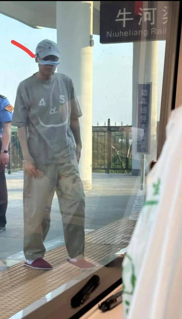 (放大细节)现正在咱们来回来一下“案展现场”:54岁的于教练当天穿戴灰色T恤和咖啡色息闲裤,脑袋上戴着一顶棒球帽,而最抢眼的则是一双亮眼的赤色拖鞋——这明白是商务座的标配一次性拖鞋啊!只睹他口罩半挂正在鼻子上,手里攥着电子烟猛吸几口,还时往往摸摸口袋东张西望,具体像是考查时怕被教练抓包的中学生。